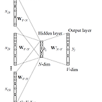 Word2Vec 1. Word2Vec word2vec은 2013년 Tomas Mikolov를 중심으로 구글에서 발표한 Continuous Word Embedding 학습 모델이다. NNLM을 계승하면서도 학습 속도를 비약적으로 끌어올려 주목받고있으며 큰 차이점으로는 NNLM모델의 Hidden Layer가 사라졌다. 각 기능에 따라 CBOW, Skip-gram 두 가지 모델을 제시하였다. 2. CBOW CBOW의 경우 주위 단어들로 부터 가장 확률론적으로 가능성이 높은 한 단어를 찾는 모델이다. 입력층~은닉층(WV∗NW_{V*N}WV∗N), 은닉층~출력층(WV∗NW_{V*N}WV∗N)을 연결하는 2개의 행렬 이 존재한다. 서로다른 행렬이며 그 모양은 서로 전치한 것과 동일하다. 실제로 같은 행렬을 이용..